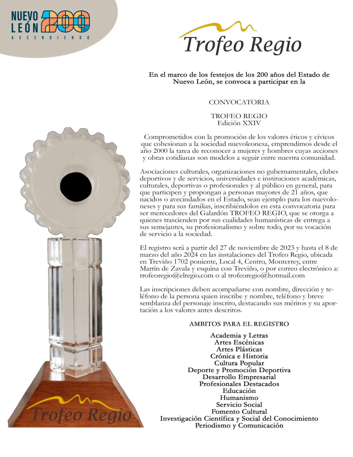 El jueves 21 de marzo de 2024 a las 17:00 h participamos en el evento del TROFEO REGIO EDICIÓN XXIV celebrada en la Nave Generadores del Centro de las Artes, Interior del Parque Fundidora, dentro del Marco de los 200 años del Estado de Nuevo León. El TROFEO REGIO es Leer más